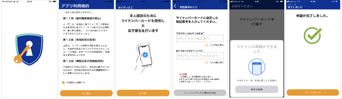 弊社公的個人認証サービスでは、お客様がご自身のスマートフォンにApp StoreやGoogle Playから『マイナンバーカード読取アプリ」をダウンロードすることで、最短1分で本人確認を完了させることができます。